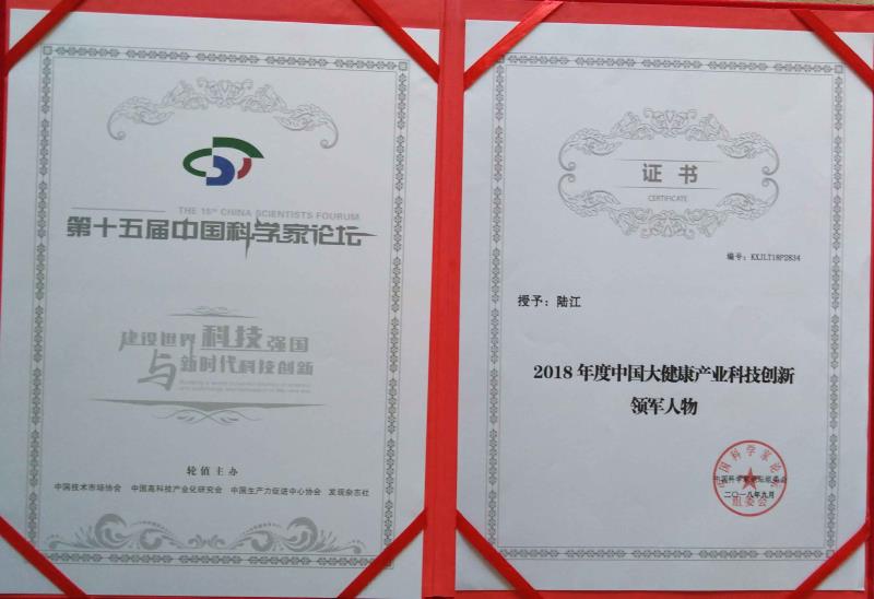 陸江榮獲醫(yī)藥行業(yè)影響人物證書